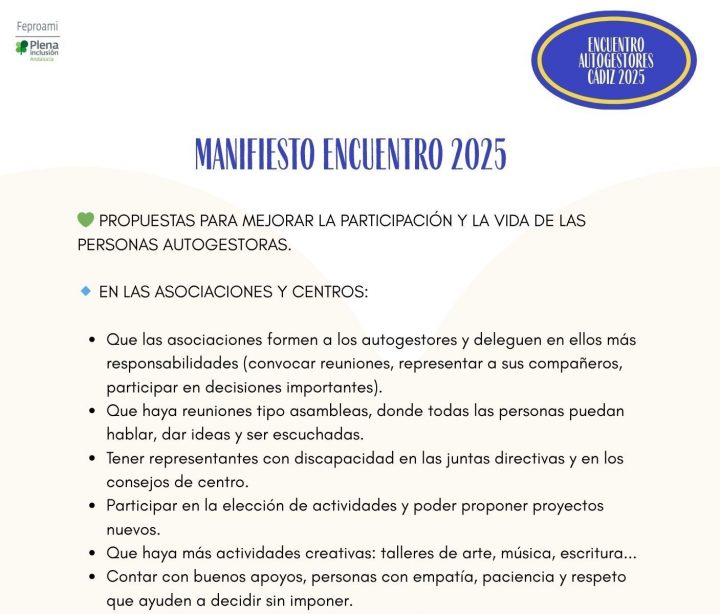 El Encuentro Provincial de Personas Autogestoras de Cádiz 2025, celebrado en Conil de la Frontera los días 24 y 25 de octubre, reunió a grupos de autogestores de toda la provincia para compartir experiencias, aprender juntos y construir propuestas de mejora para sus vidas y sus asociaciones. El encuentro fue organizado por FEPROAMI con la…