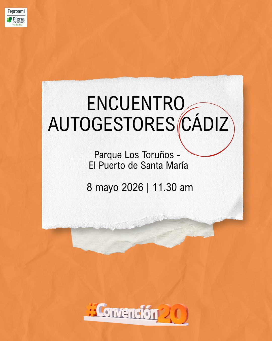 📍 Lugar: Parque Los Toruños (El Puerto de Santa María).📅 Fecha: 8 de mayo de 2026.🕦 Hora: 11:30 h. 💬 ¿Qué es este encuentro? Celebramos el Día Nacional de la Convención de los Derechos de las Personas con Discapacidad. Este año es especial porque se cumplen 20 años de la Convención, un documento muy importante…