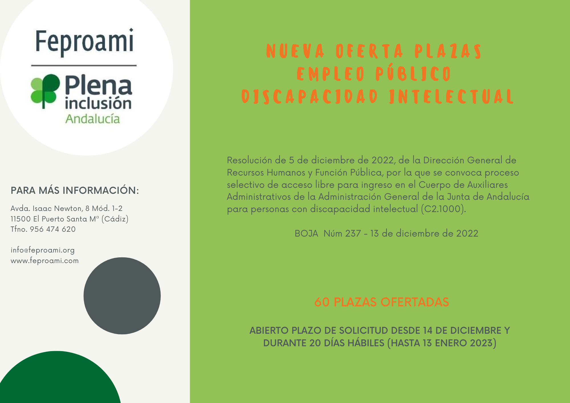 En BOJA de 13 de diciembre se publica Resolución de 5 de diciembre de 2022, de la Dirección General de Recursos Humanos y Función Pública, por la que se convoca proceso selectivo de acceso libre para ingreso en el Cuerpo de Auxiliares Administrativos de la Administración General de la Junta de Andalucía para personas con…