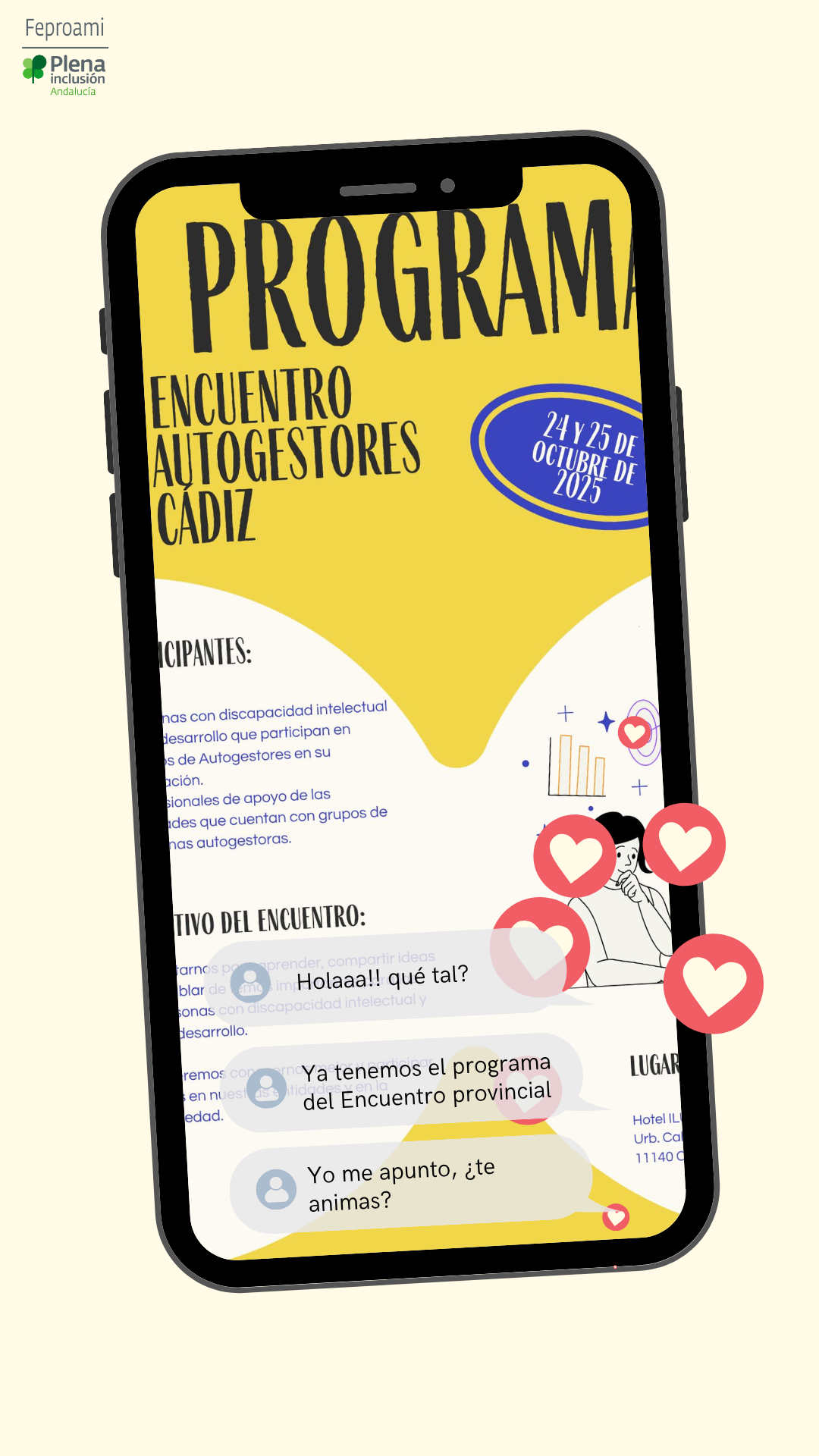 Un año más, FEPROAMI organiza junto con los Grupos de Autogestores de las entidades miembro de la federación, un Encuentro Provincial. Los detalles del próximo son los siguientes: 📅 Fechas: 24 y 25 de octubre de 2025. 📍 Lugar: Hotel ILUNION Calas de Conil (Conil de la Frontera, Cádiz). 💬 ¿Qué es este encuentro? Es…