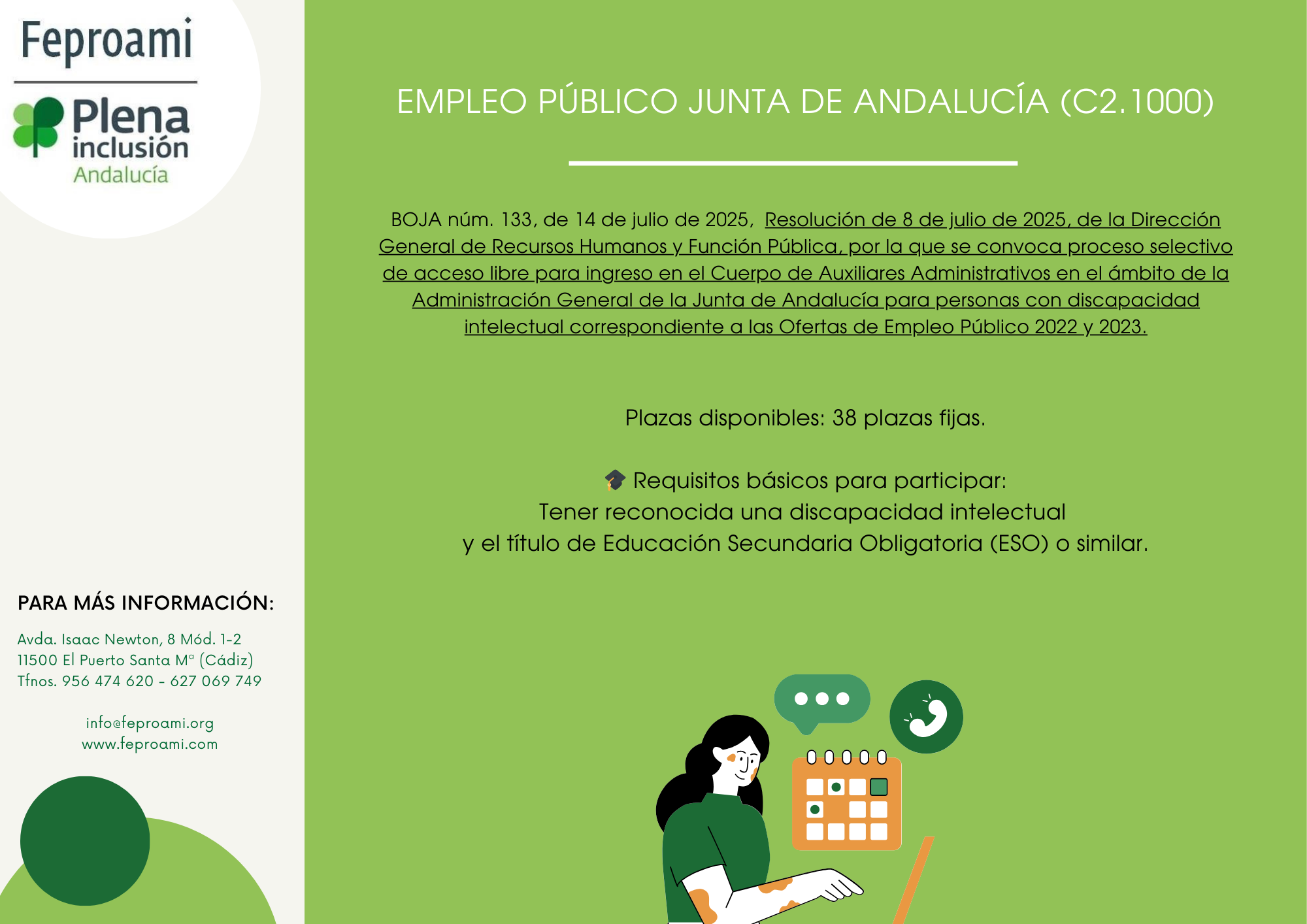 En el BOJA de fecha 14 de julio de 2025, se ha publicado Resolución de 8 de julio de 2025, de la Dirección General de Recursos Humanos y Función Pública, por la que se convoca proceso selectivo de acceso libre para ingreso en el Cuerpo de Auxiliares Administrativos en el ámbito de la Administración General…