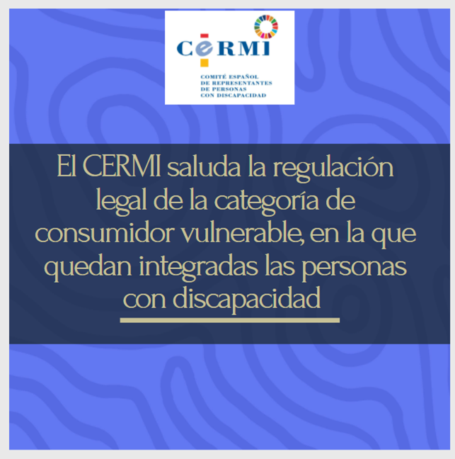 El Comité Español de Representantes de Personas con Discapacidad (CERMI) saluda la regulación legal por vez primera en España de la categoría de consumidor vulnerable, lo que permitirá dotar de mayor protección y garantías de sus derechos a esta tipología de usuarios. El Boletín Oficial del Estado publica hoy el Real Decreto-ley 1/2021, de 19…