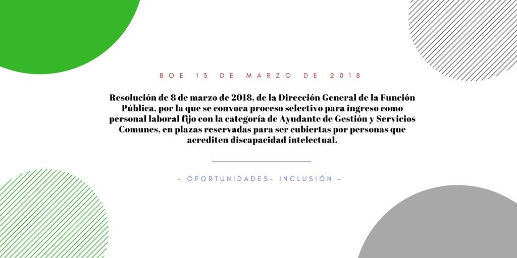 Publicada en BOE nº 63 de 13 de marzo de 2018, Resolución de 8 de marzo de 2018, de la Dirección General de la Función Pública, por la que se convoca proceso selectivo para ingreso como personal laboral fijo con la categoría de Ayudante de Gestión y Servicios Comunes, en plazas reservadas para ser cubiertas por personas…