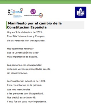 Plena Inclusión España nos adelanta, en Lectura Fácil, el Manifiesto CERMI (Comité español de representantes de personas con discapacidad), con motivo del Día Internacional y Europeo de la discapacidad 2021, que como todos los años, celebraremos el 3 de diciembre. Este año se pide: La reforma del artículo 49 de la Constitución para la eliminación…