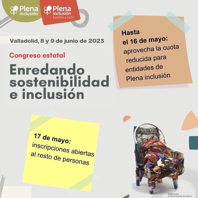 Plena Inclusión Confederación, en colaboración con Plena Inclusión Castilla y León, organiza su Congreso Estatal sobre la sostenibilidad en las organizaciones, donde expertos y expertos presentarán las mejores prácticas elegidas por un jurado. El Congreso se llevará a cabo en en recinto ferial de Valladolid, los días 8 y 9 de junio 2023. Amplia información Inscríbete