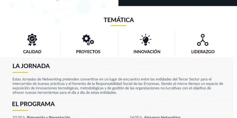 La Jornada Networking sobre Buenas Prácticas en la Gestión de Entidades del tercer Sector se llevará a cabo el próximo miércoles 24 de mayo, en horario de 8.00 a 17.00 hrs. en la Sede Fundación Valentín de Madriaga (Av. María Luisa, s/n – Sevilla).