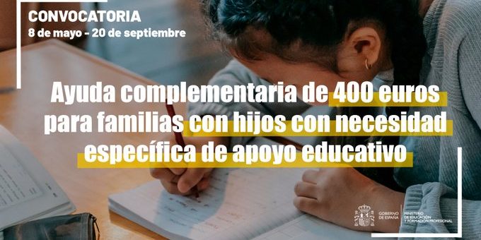 La convocatoria para solicitar ayudas complementarias de 400 euros para alumnos con necesidades específicas de apoyo educativo se abre este lunes, 8 de mayo, según indicó la resolución publicada el pasado 26 de abril en el Boletín Oficial del Estado (BOE).